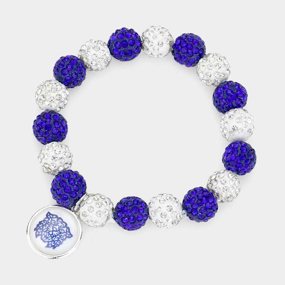Lion Accented Round Charm Shamballa Ball Stretch Bracelet