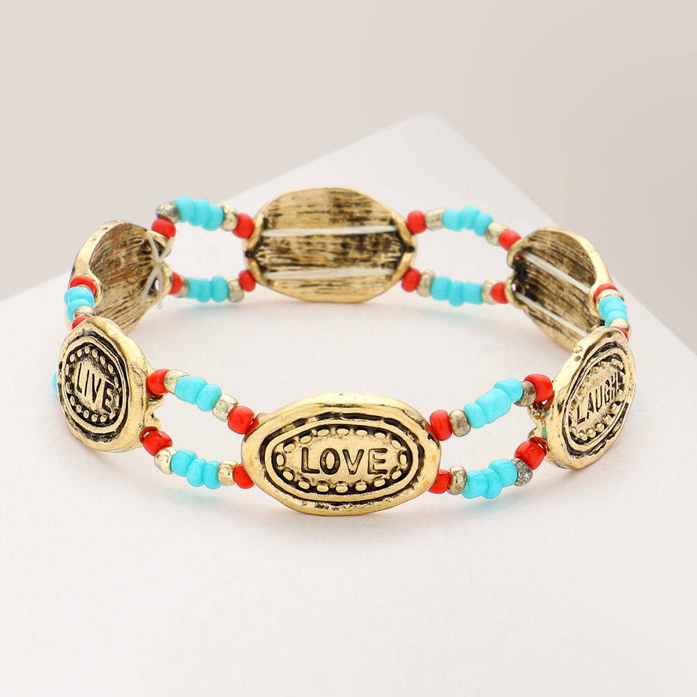 LIVE LAUGH LOVE Message Pendant Accented Beads Stretch Bracelet