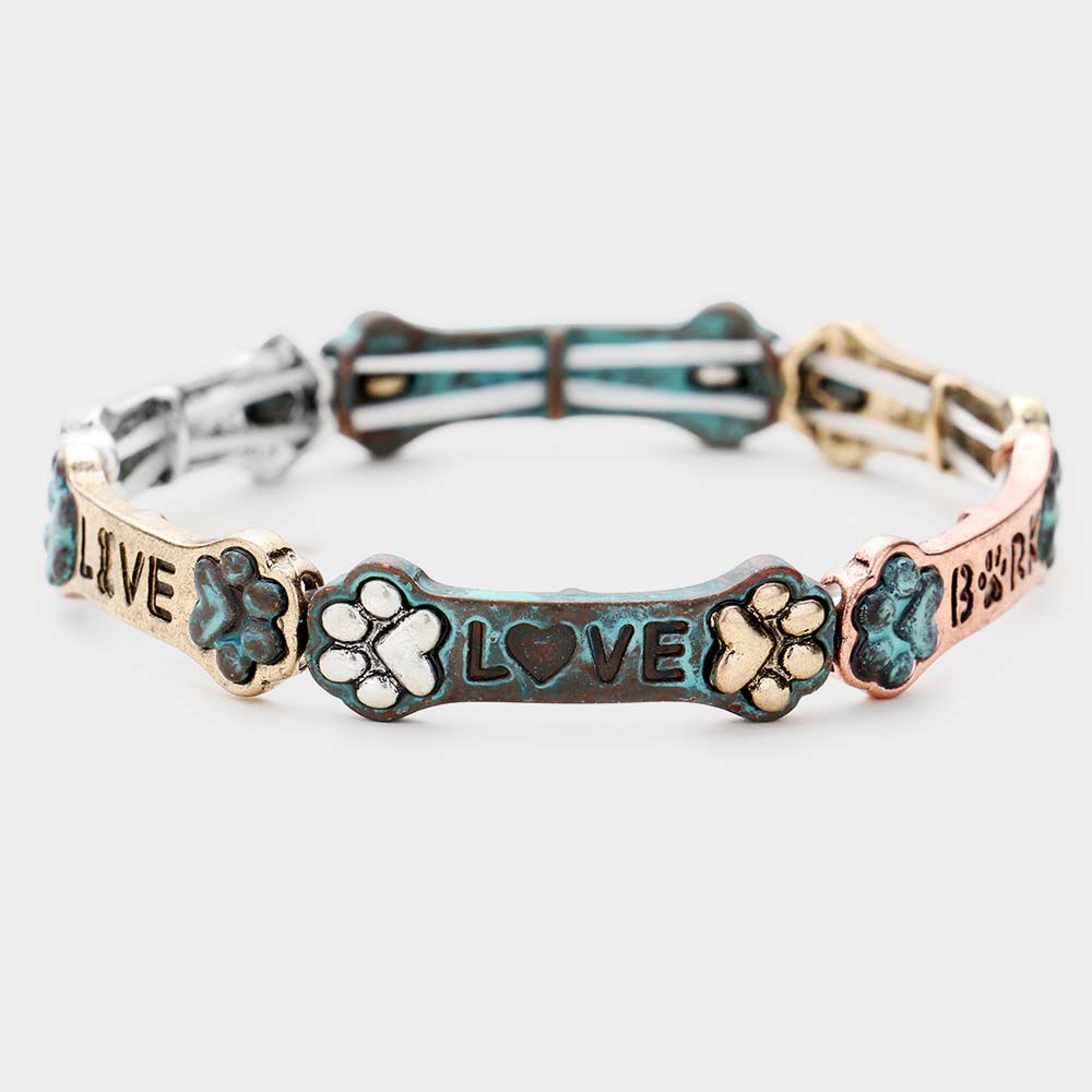 Live Love Bark Paw Burnished Metal Stretch Bracelet