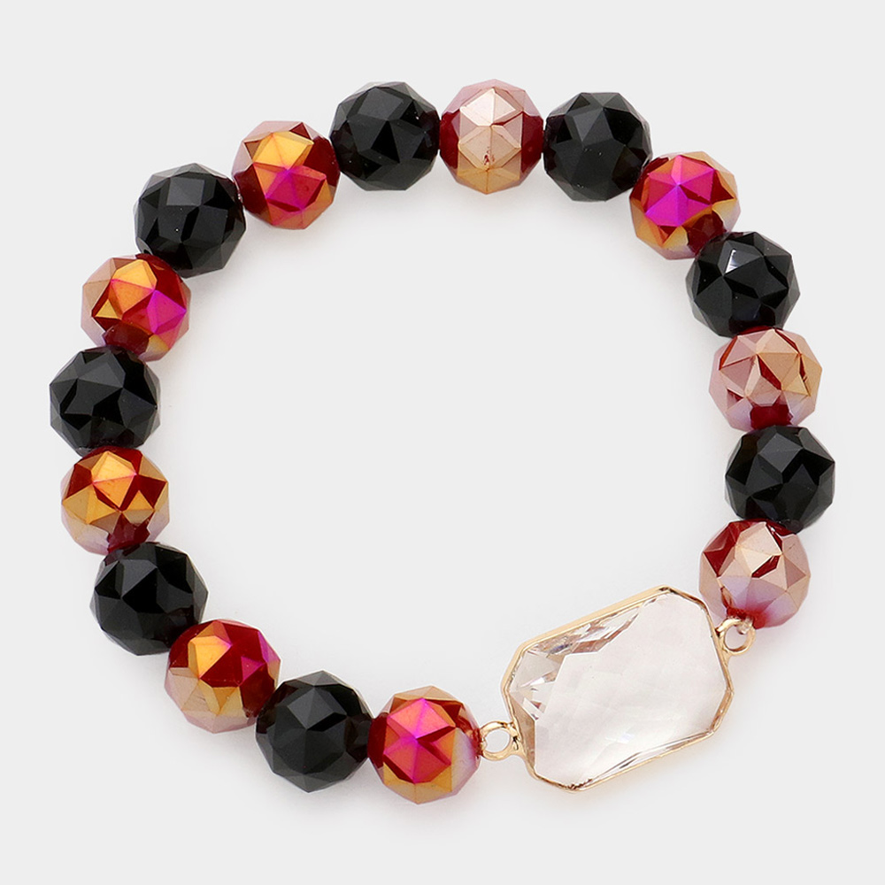 Lucite Accented Faceted Beaded Stretch Bracelet