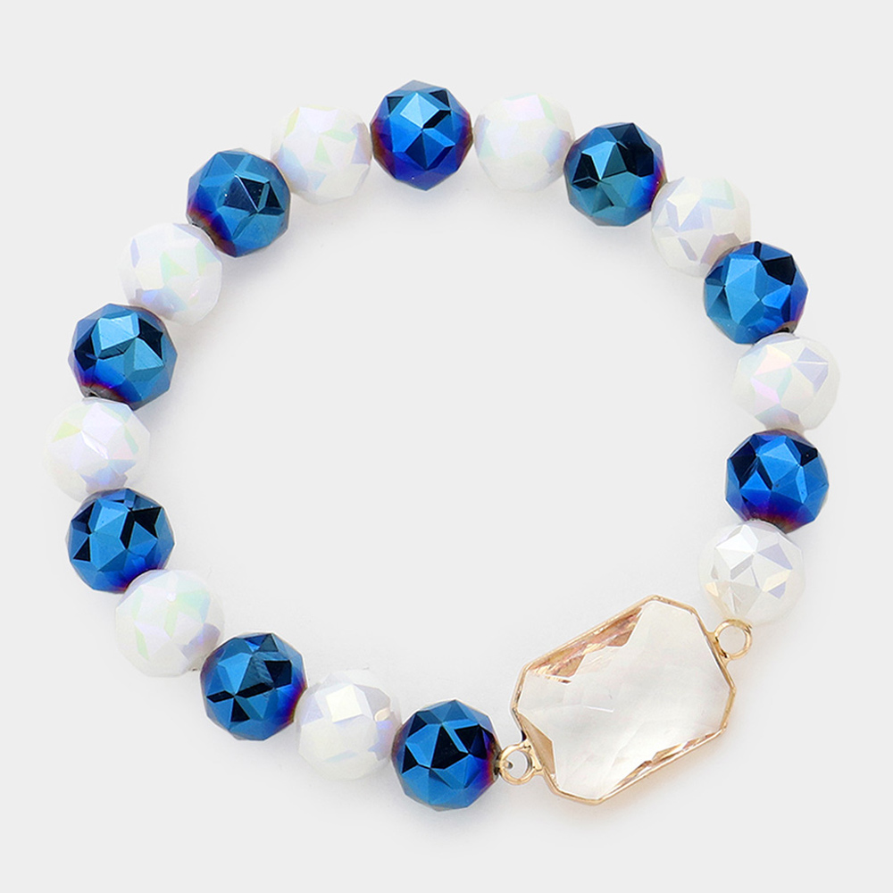 Lucite Accented Faceted Beaded Stretch Bracelet