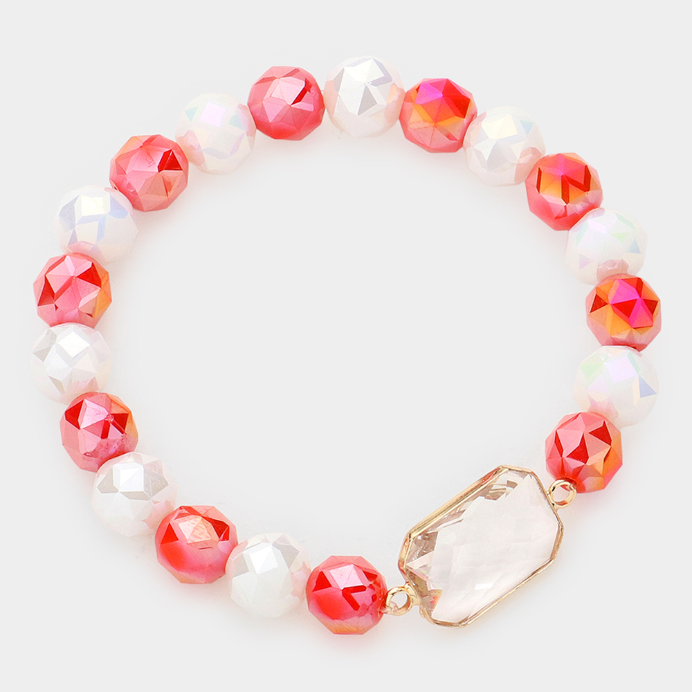 Lucite Accented Faceted Beaded Stretch Bracelet