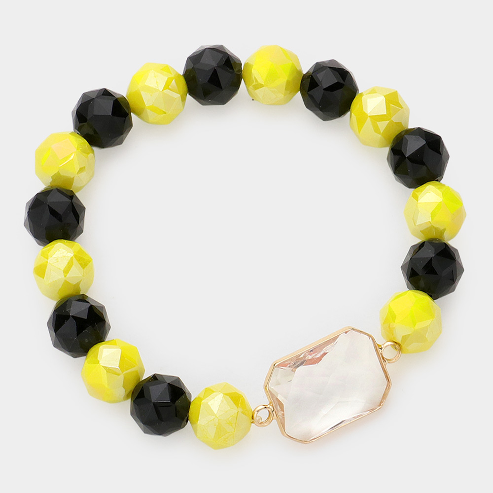 Lucite Accented Faceted Beaded Stretch Bracelet