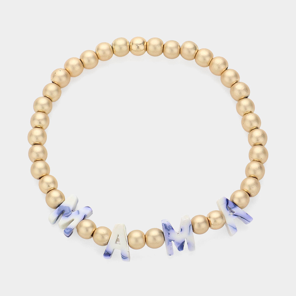 MAMA Celluloid Acetate Message Metal Ball Stretch Bracelet