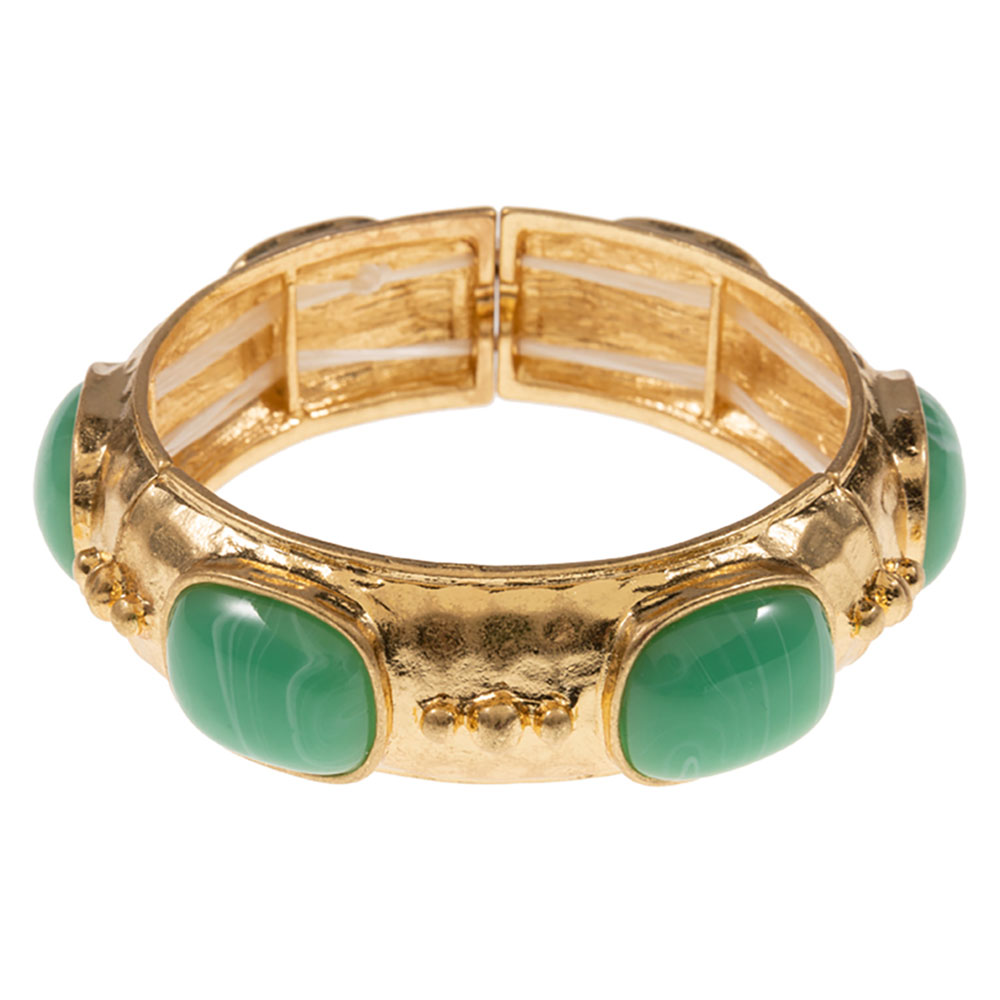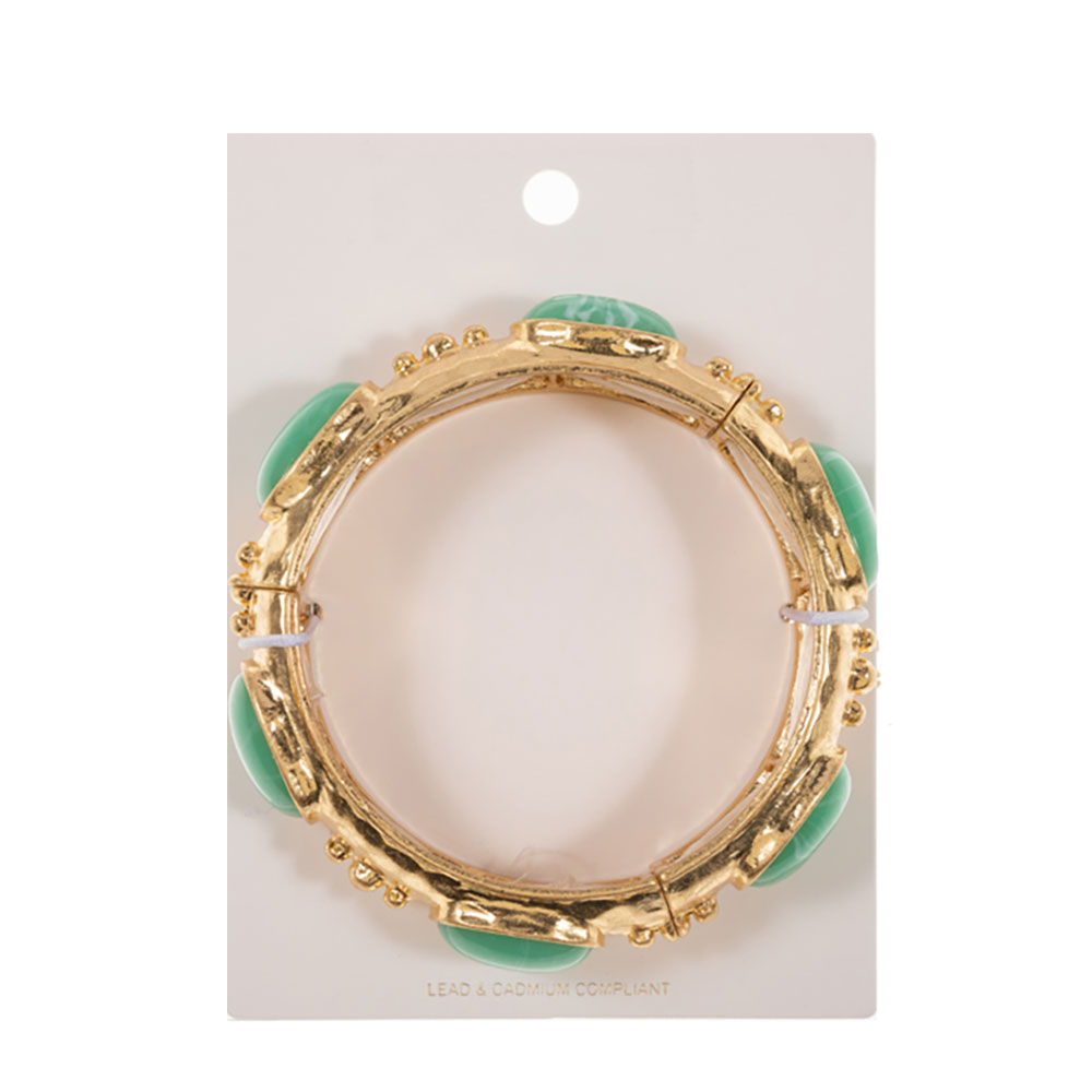 Details • Size : 0.75" H • Stretchable • Make a statement with this gold-tone stretch bracelet adorned with marbled stones. A stylish and comfortable accessory perfect for adding a pop of color to any outfit. • Lead and Nickel Compliant