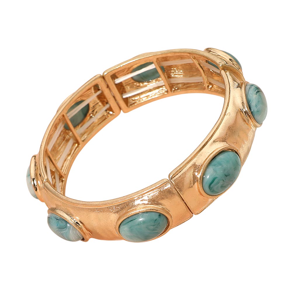 Marbled Oval Stone Accent Hammered Metal Beaded Stretch Bracelet
