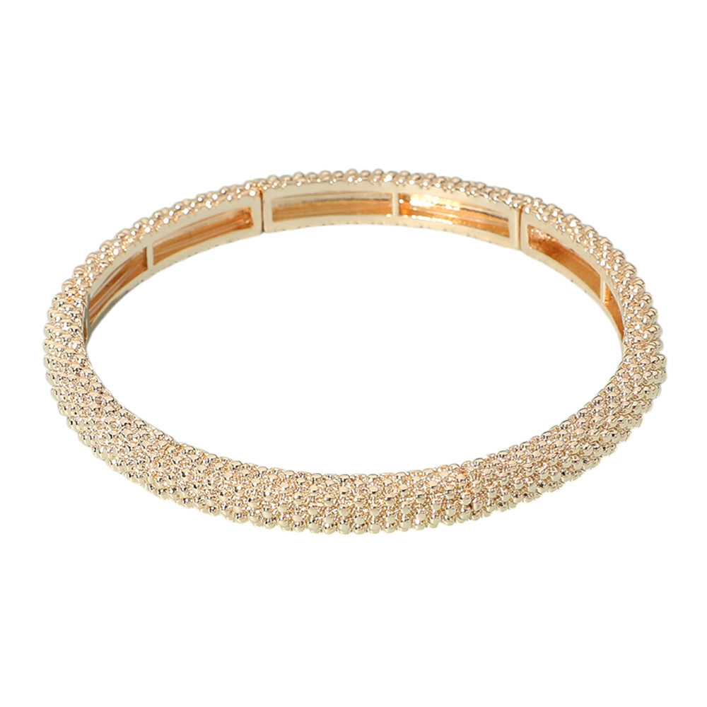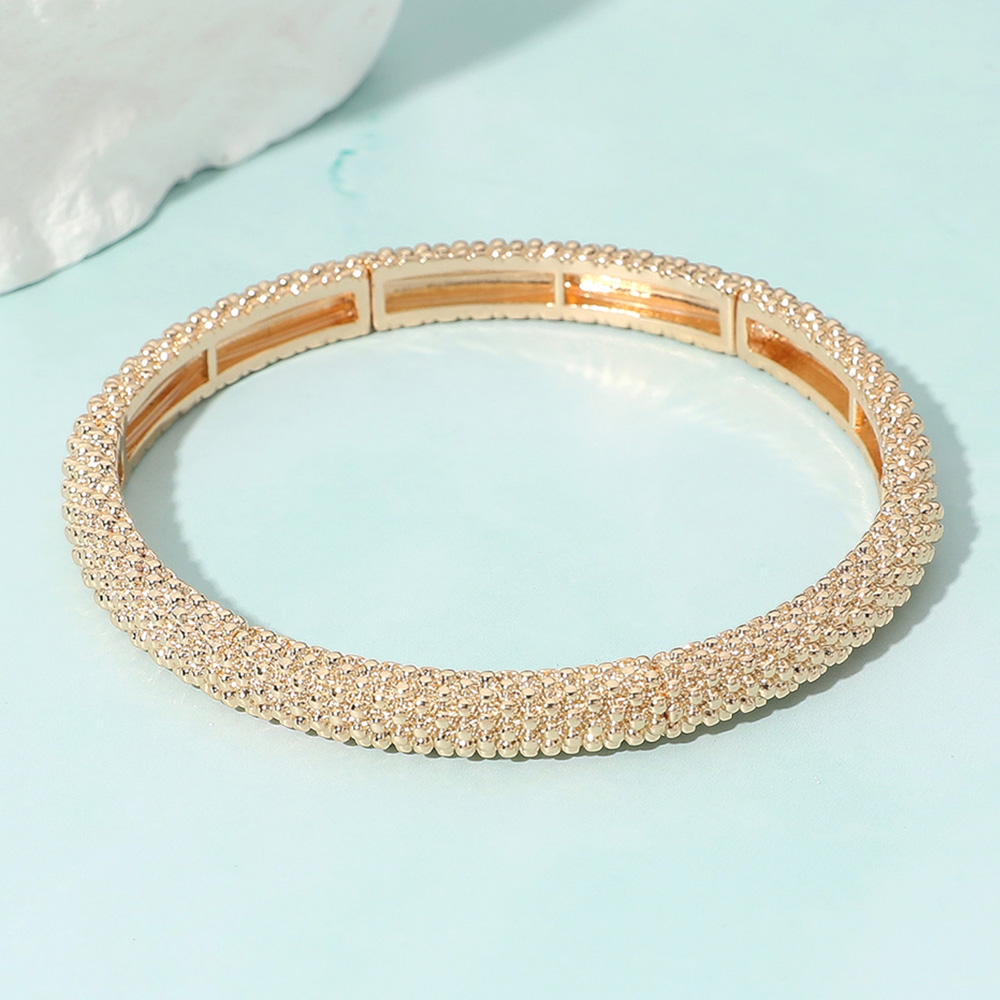 Stone Paved Ring Celluloid Acetate Bar Beaded Stretch Bracelet