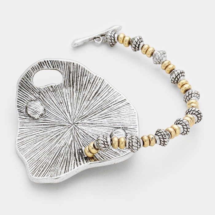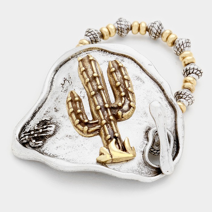 Metal Cactus Plate Beaded Toggle Stretch Bracelet