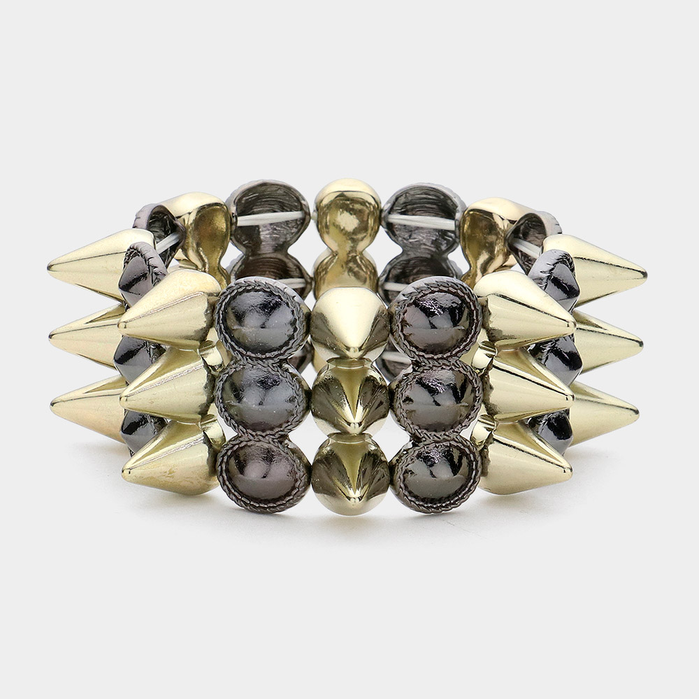 2PCS - FAITH Message Pointed Pink Ribbon Charm Faceted Beaded Stretch Double Layered Bracelets