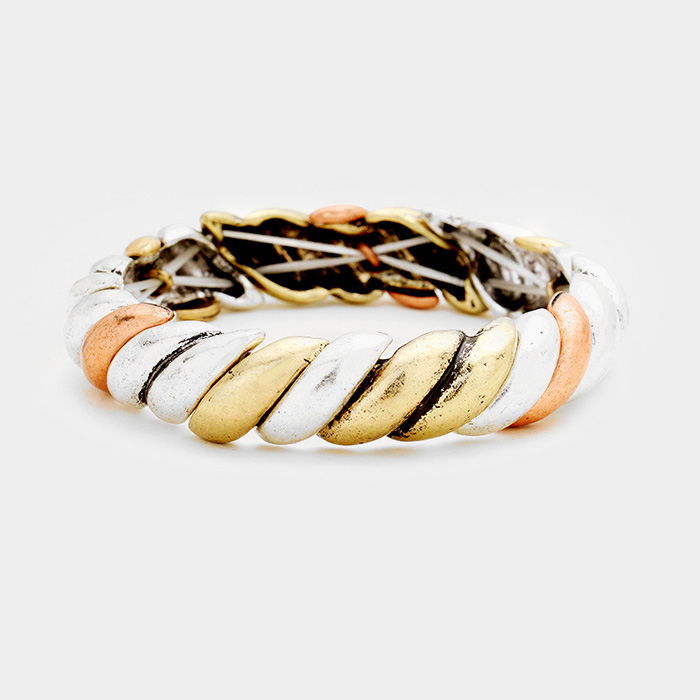 Multi-color Square CZ Stone Accent Twisted Hinged Bangle Bracelet