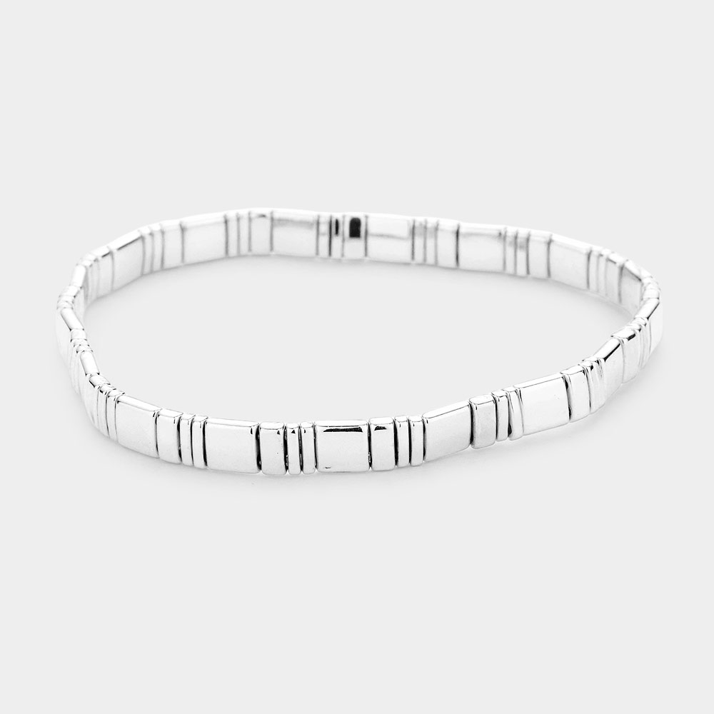 Bold Geometric Brushed Metal Square Link Statement Necklace
