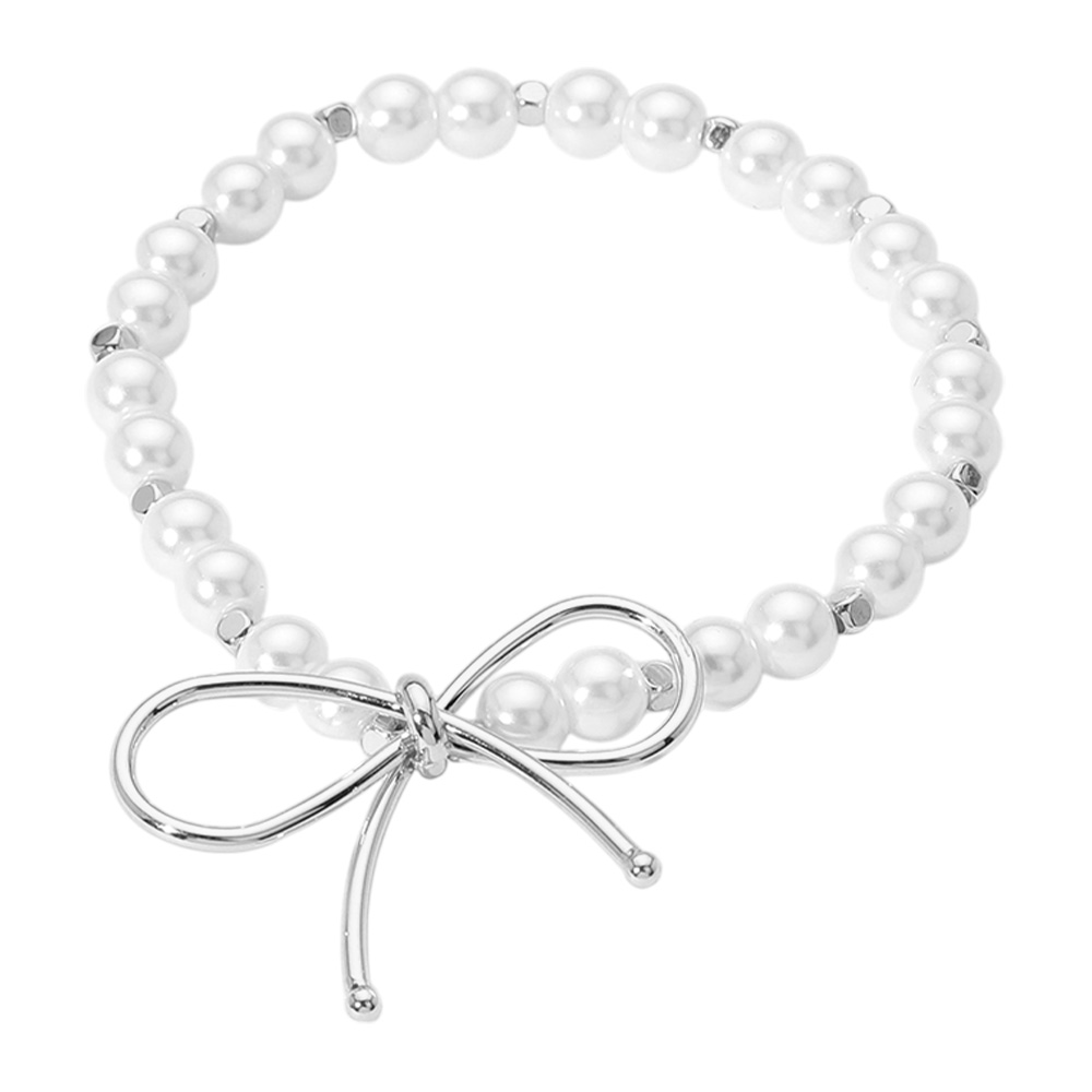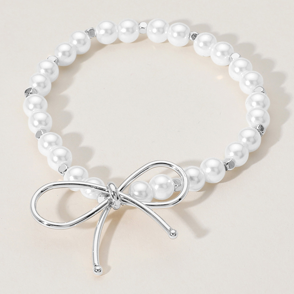 Metal Wire Bow Pearl Beaded Stretch Bracelet