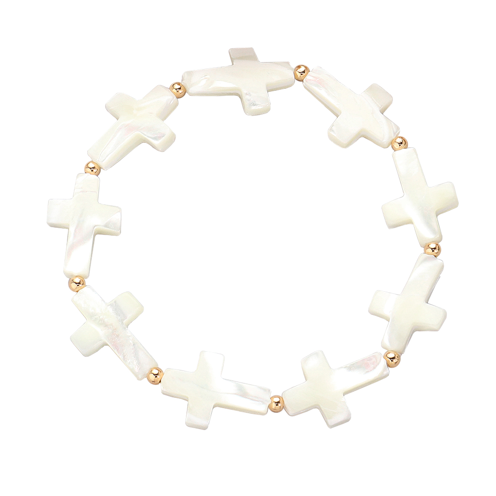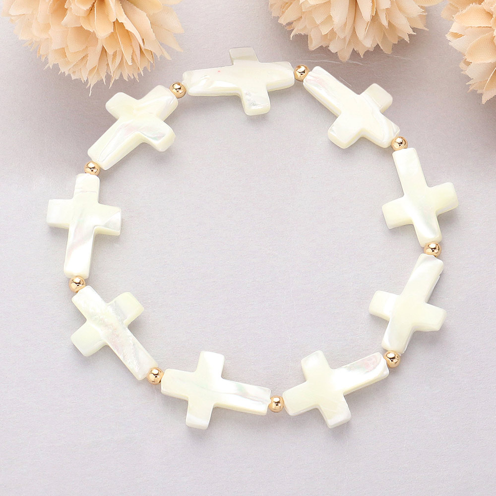 Mother Of Pearl Cross Beaded Stretch Bracelet