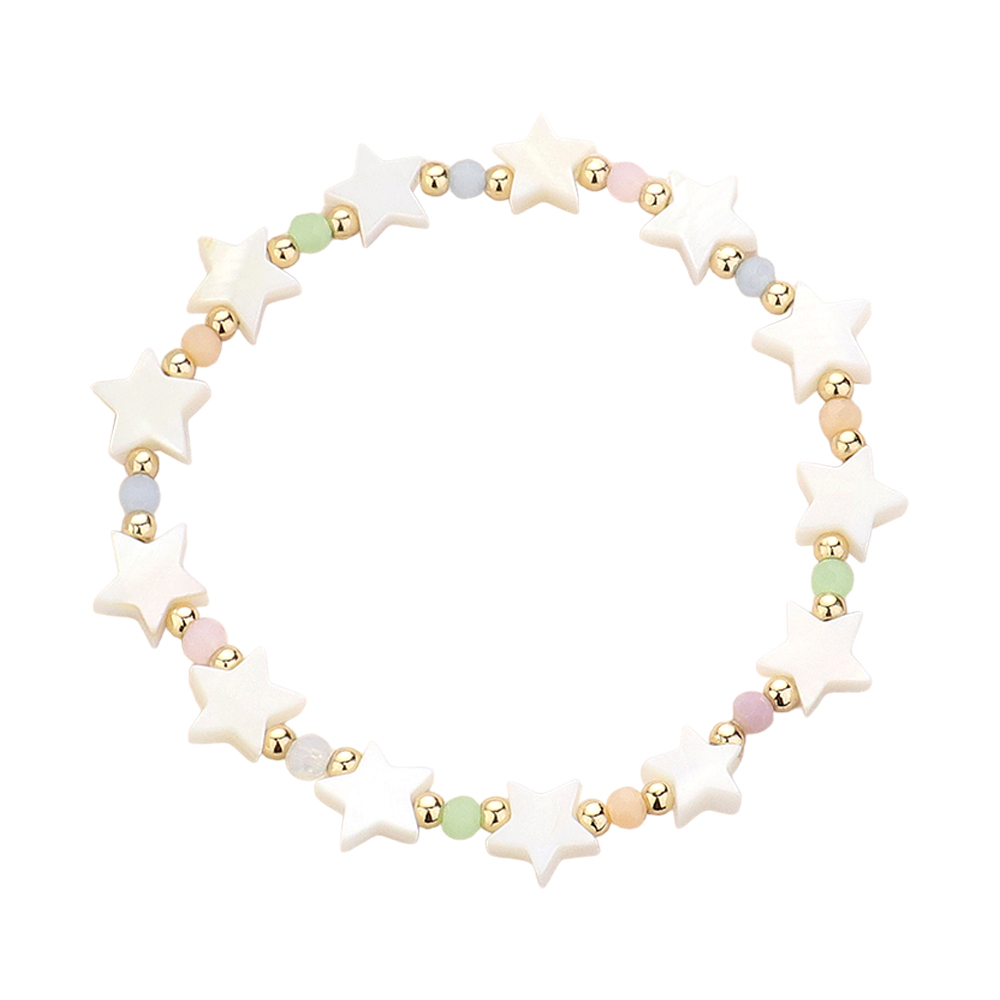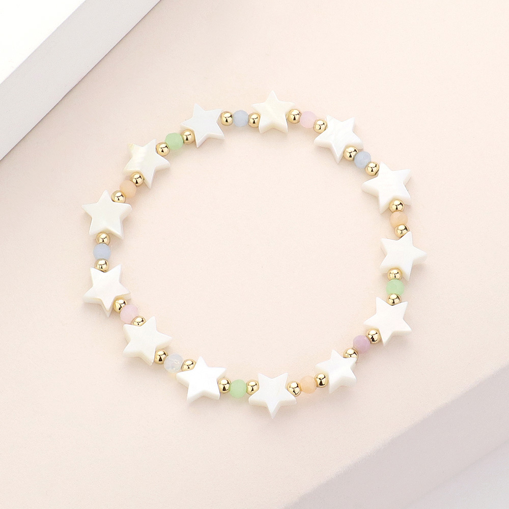 Stone Paved Star Pointed Beaded Triple Layered Pull Tie Cinch Bracelet