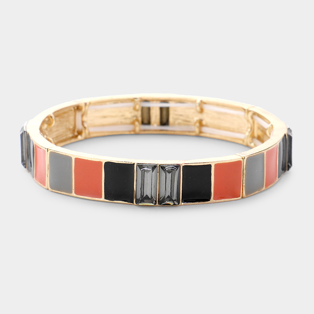 12PCS - Ribbon Colorful Rhinestone Layered Stretch Bracelets