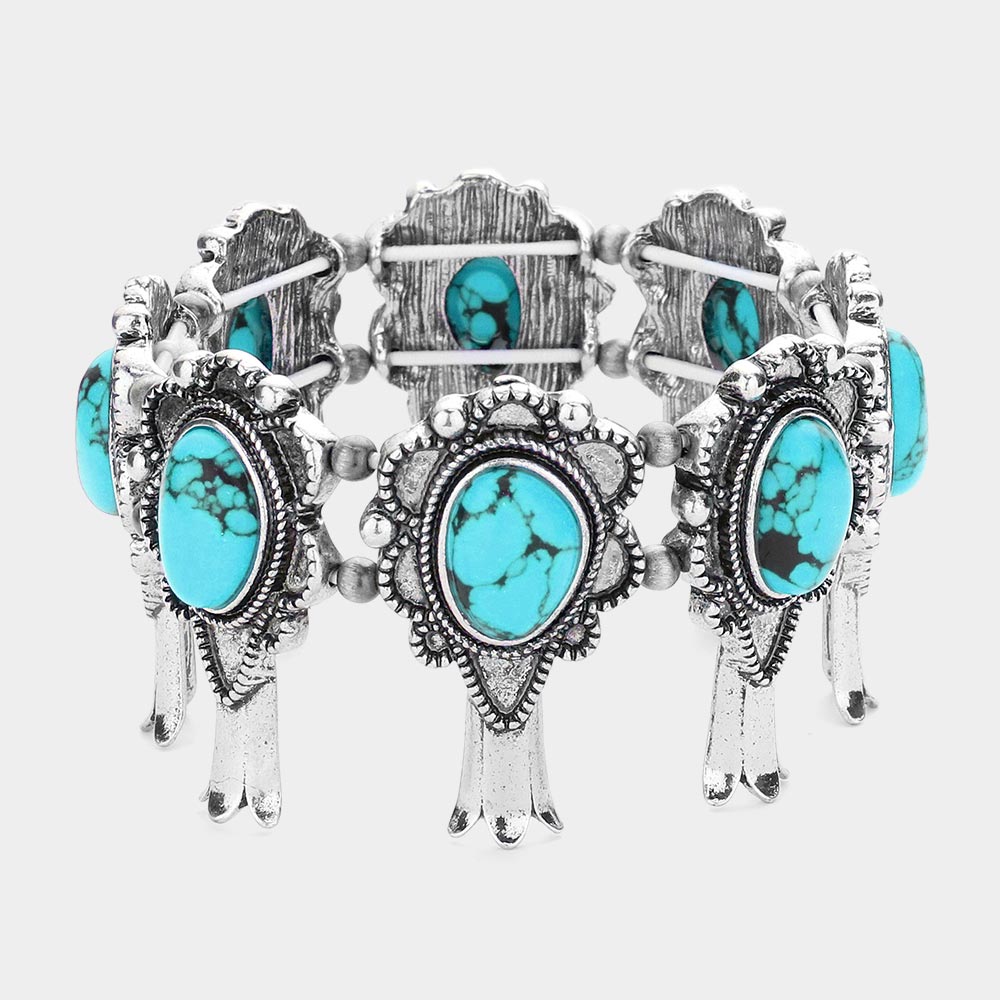 Antique Metal Western Natural Stone Pointed Stretch Bracelet