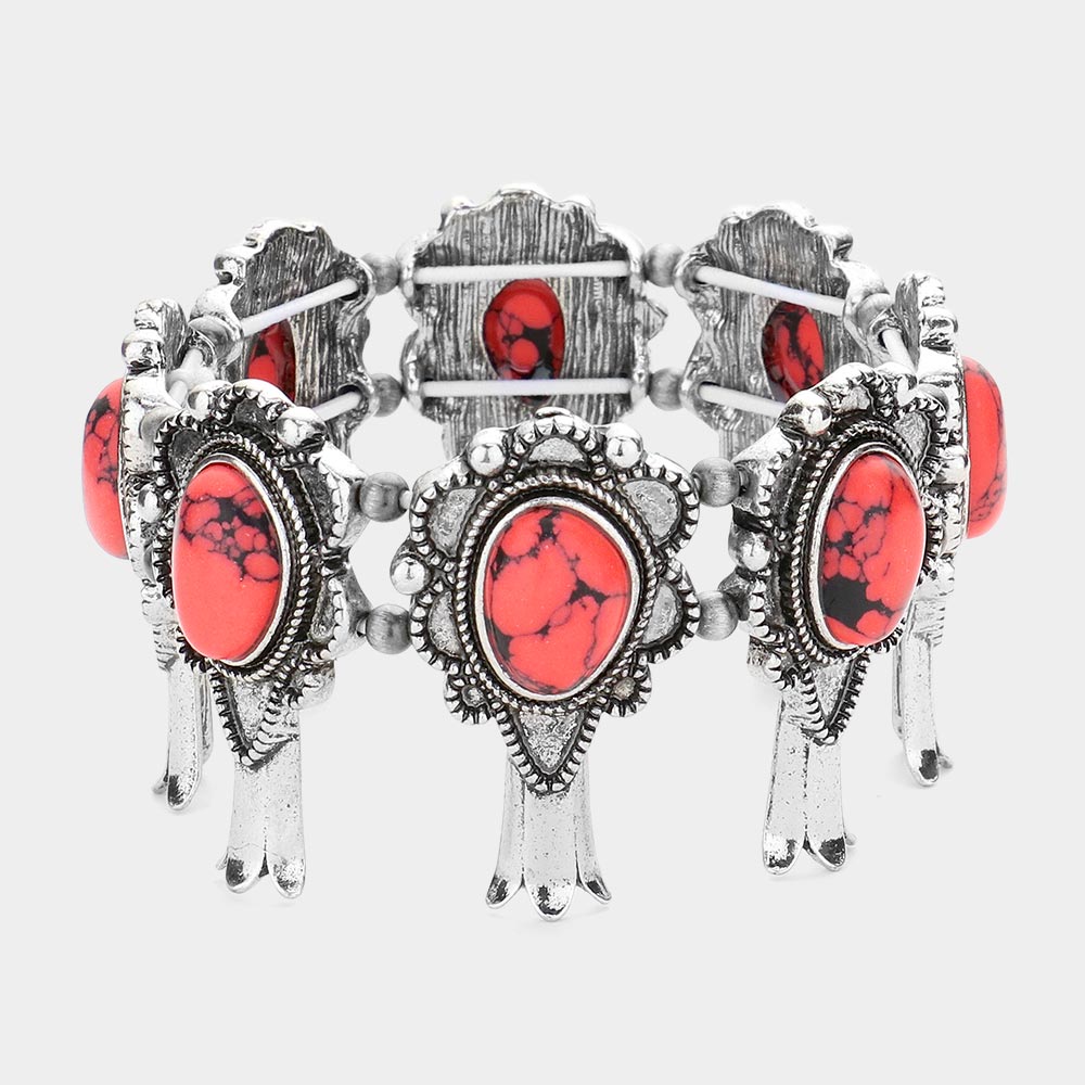 Natural Stone Accented Squash Blossom Stretch Bracelet