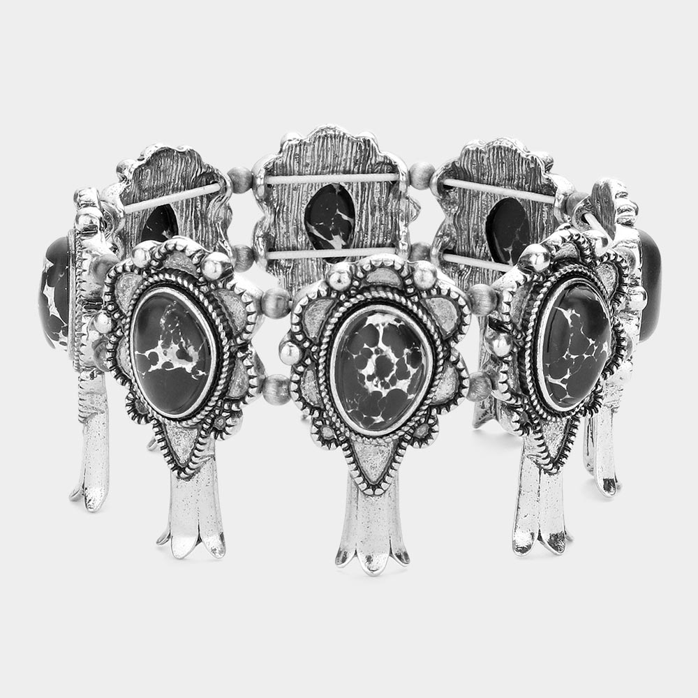 Natural Stone Accented Squash Blossom Stretch Bracelet