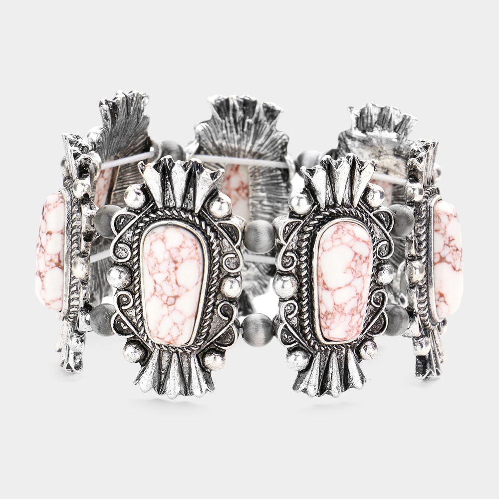 Natural Stone Accented Squash Blossom Stretch Bracelet