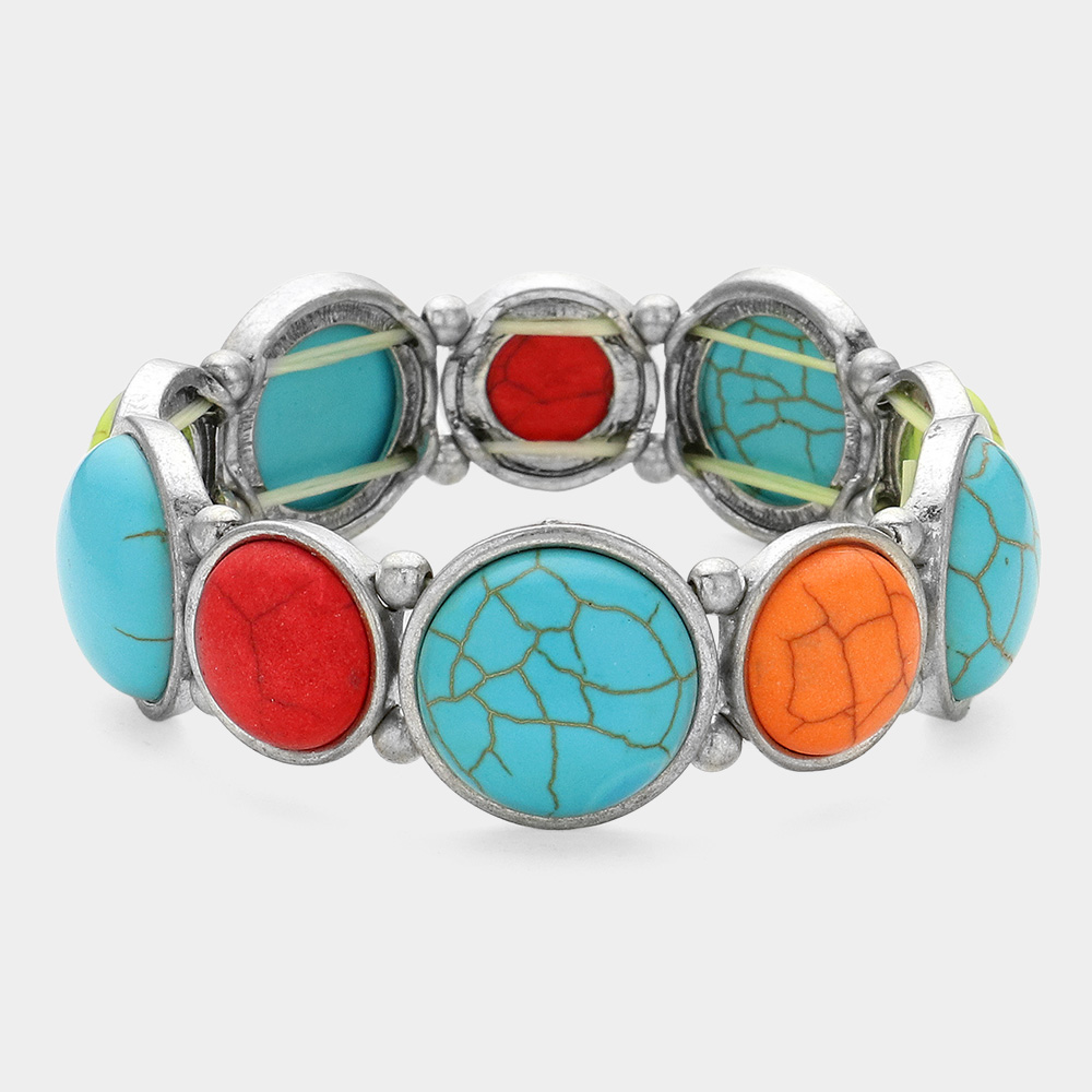 Teardrop Turquoise Stone Accent Boho Western Steer Head Pendant Necklace