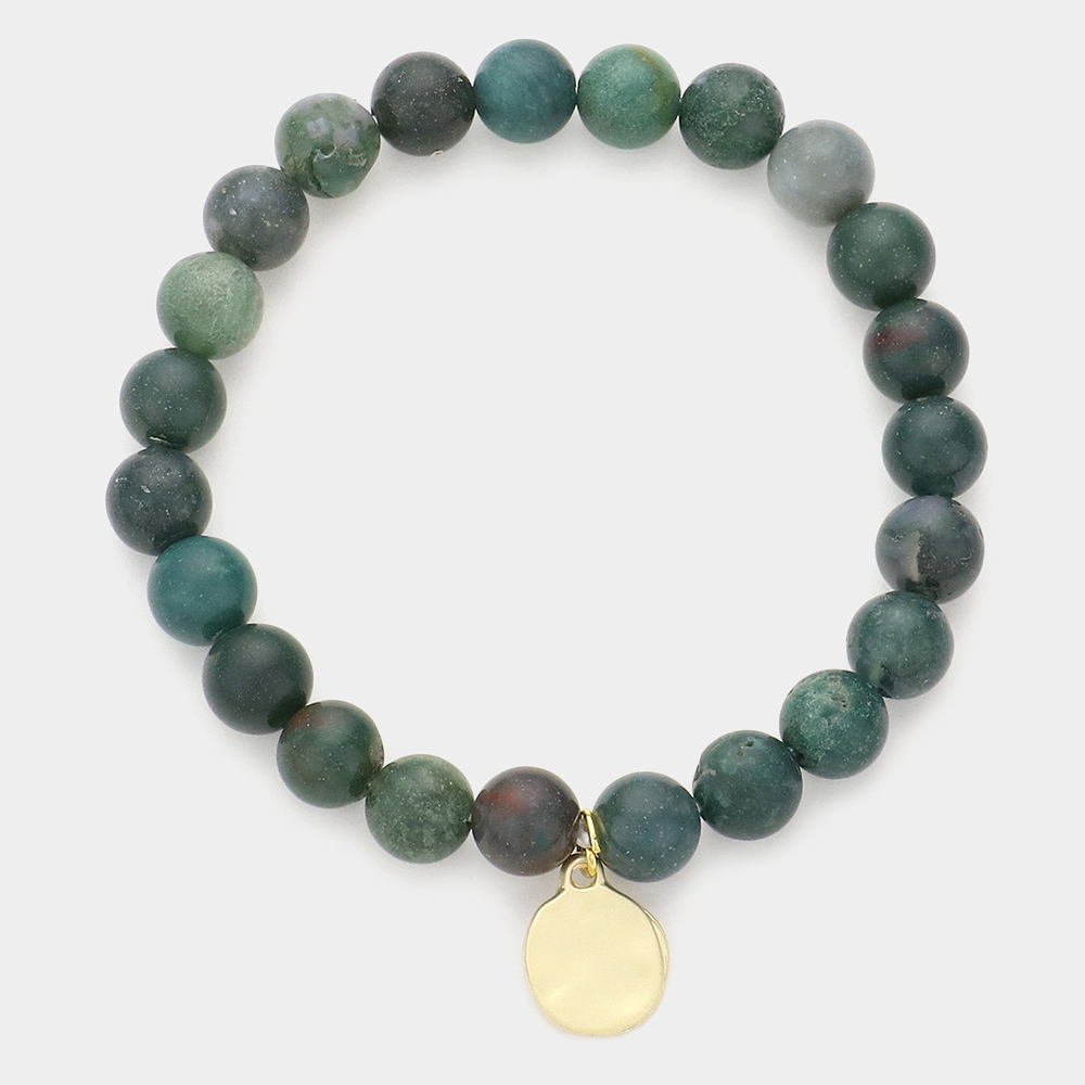 Natural Stone Hammered Metal Charm Stretch Bracelet