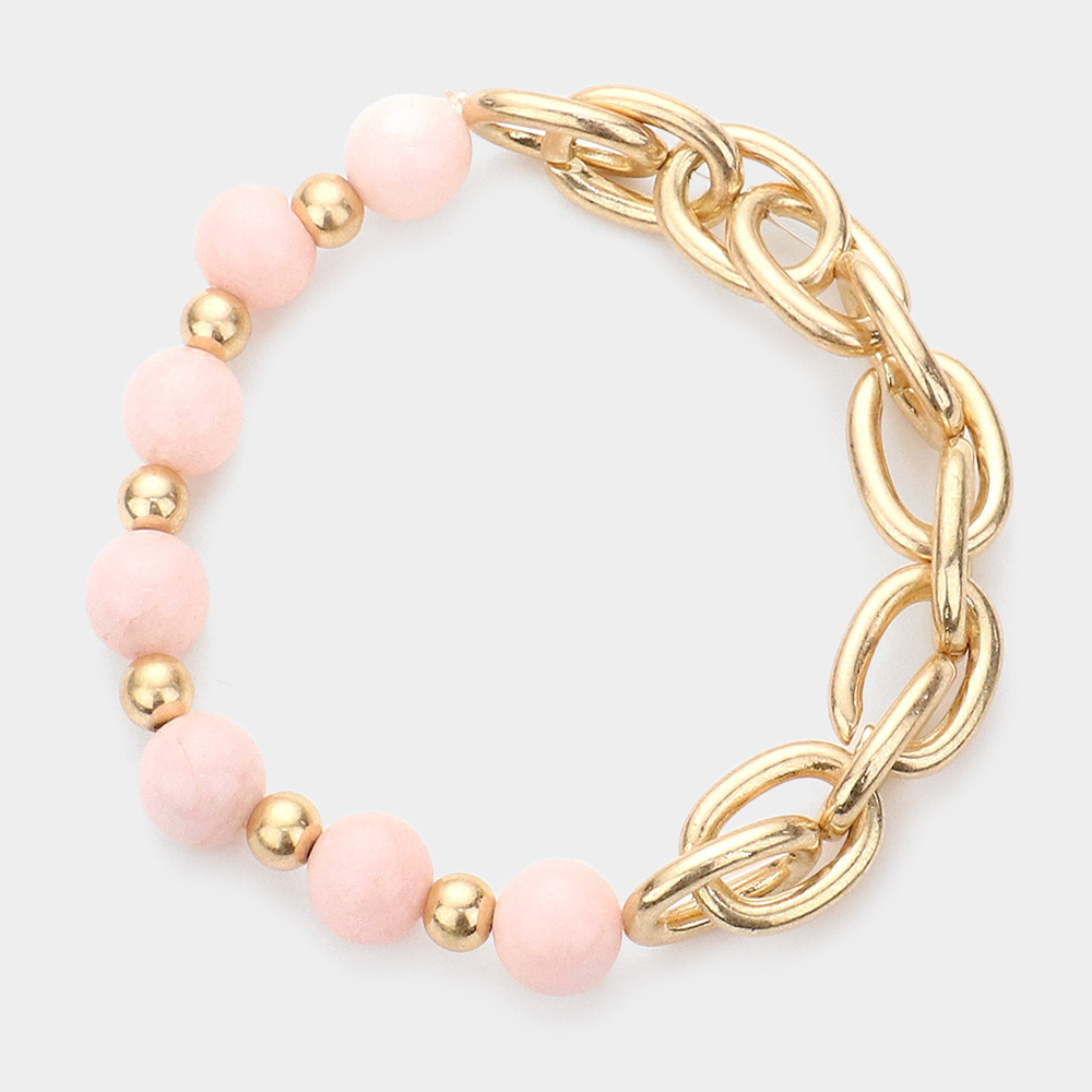 Natural Stone Open Metal Oval Link Stretch Bracelet