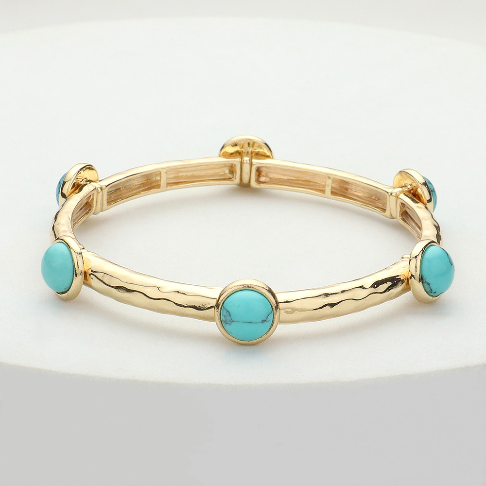 Bold Geometric Resin Metal Beaded Wide Stretch Bracelet