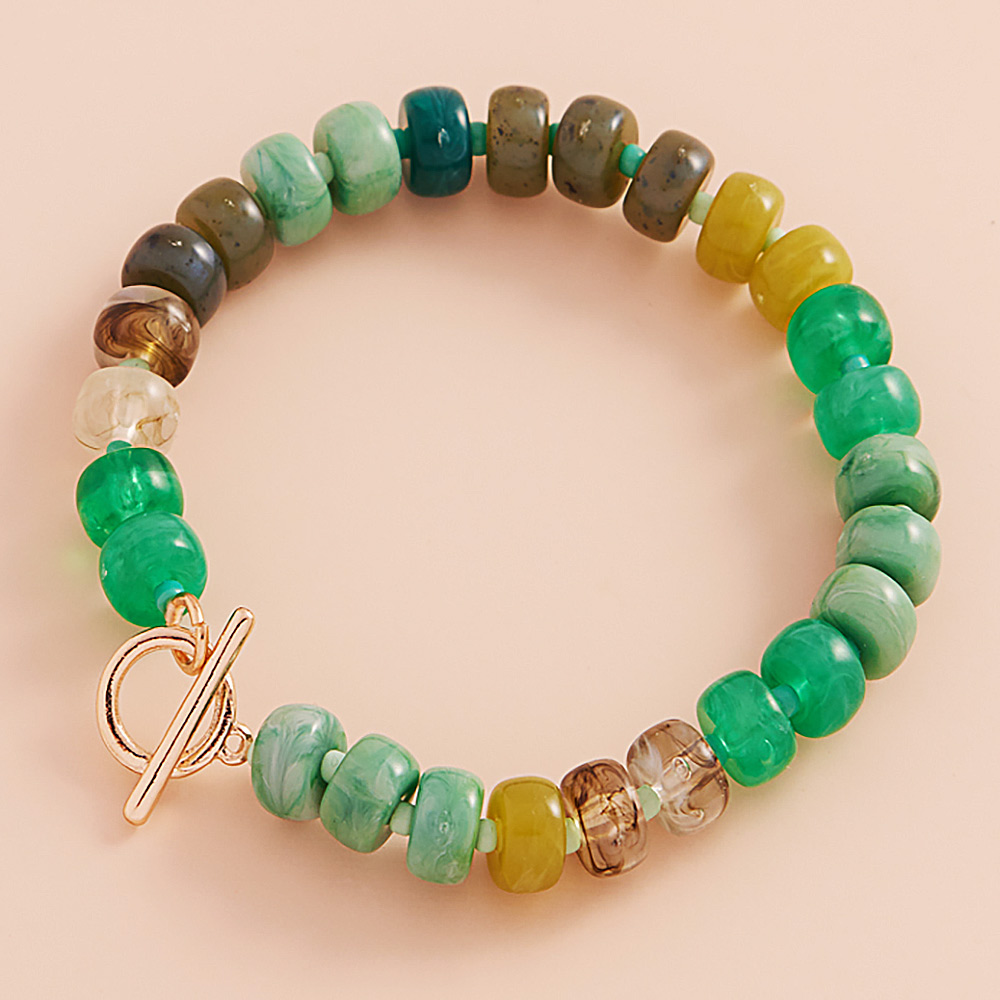 • Stretch bracelet with smooth, rounded beads and a sleek toggle clasp. Designed for comfort and everyday style, this versatile accessory adds a playful yet polished touch to any outfit, from casual to dressy.