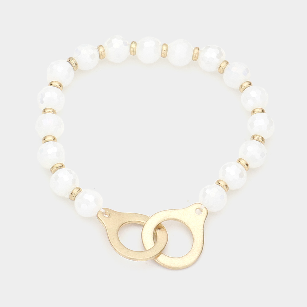Open Metal Link Accented Faceted Beaded Stretch Bracelet