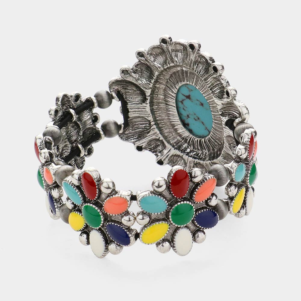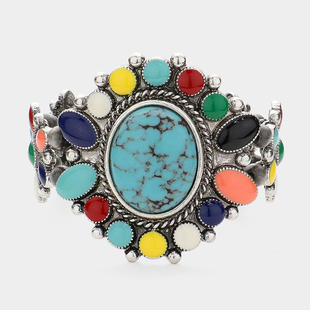 Teardrop Natural Stone Antique Metal Cuff Bracelet