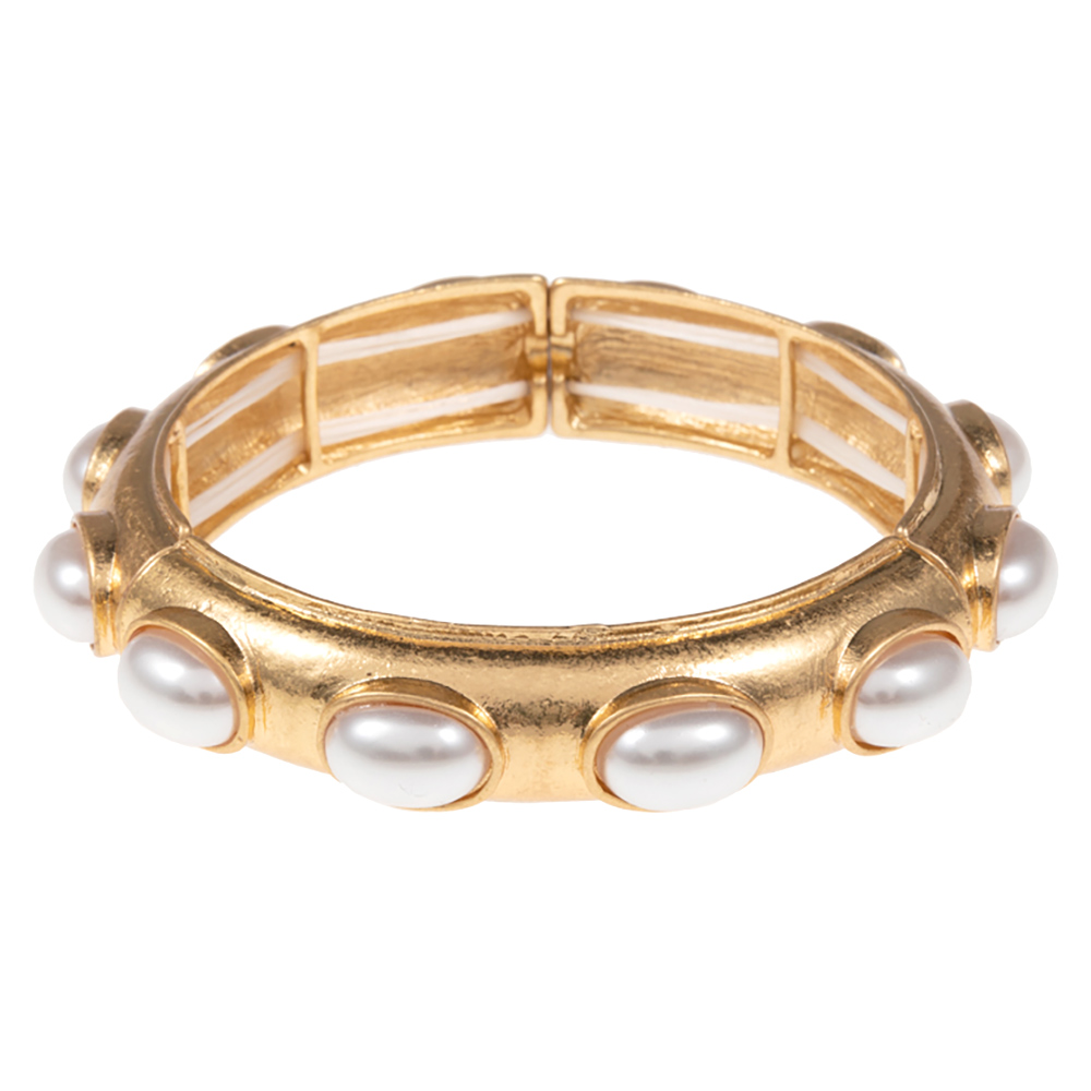 Oval Pearl Pointed Brushed Metal Stretch Bangle Bracelet