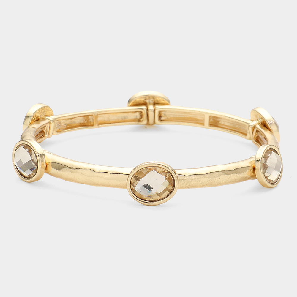• Stylish stretch bracelet featuring faceted stone accents set in a sleek design. Perfect for adding a touch of sophistication to casual wear or complementing formal and evening outfits.