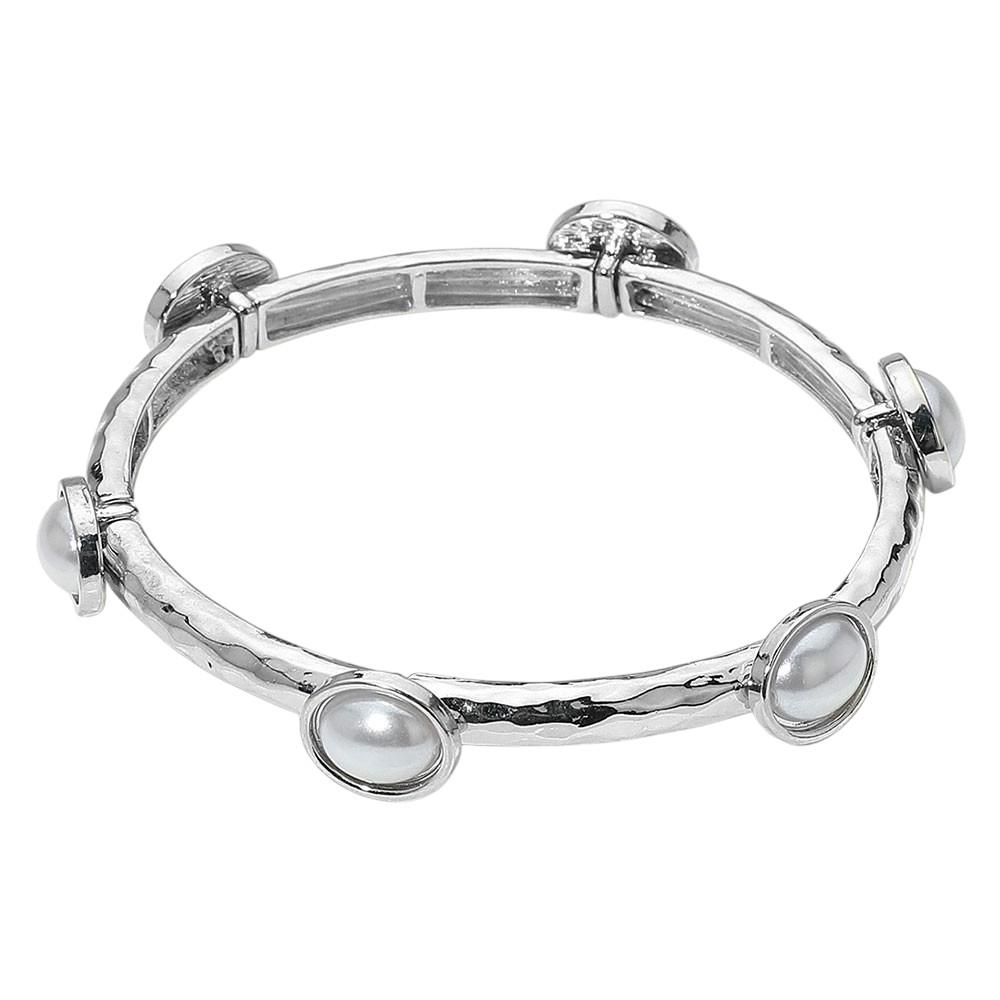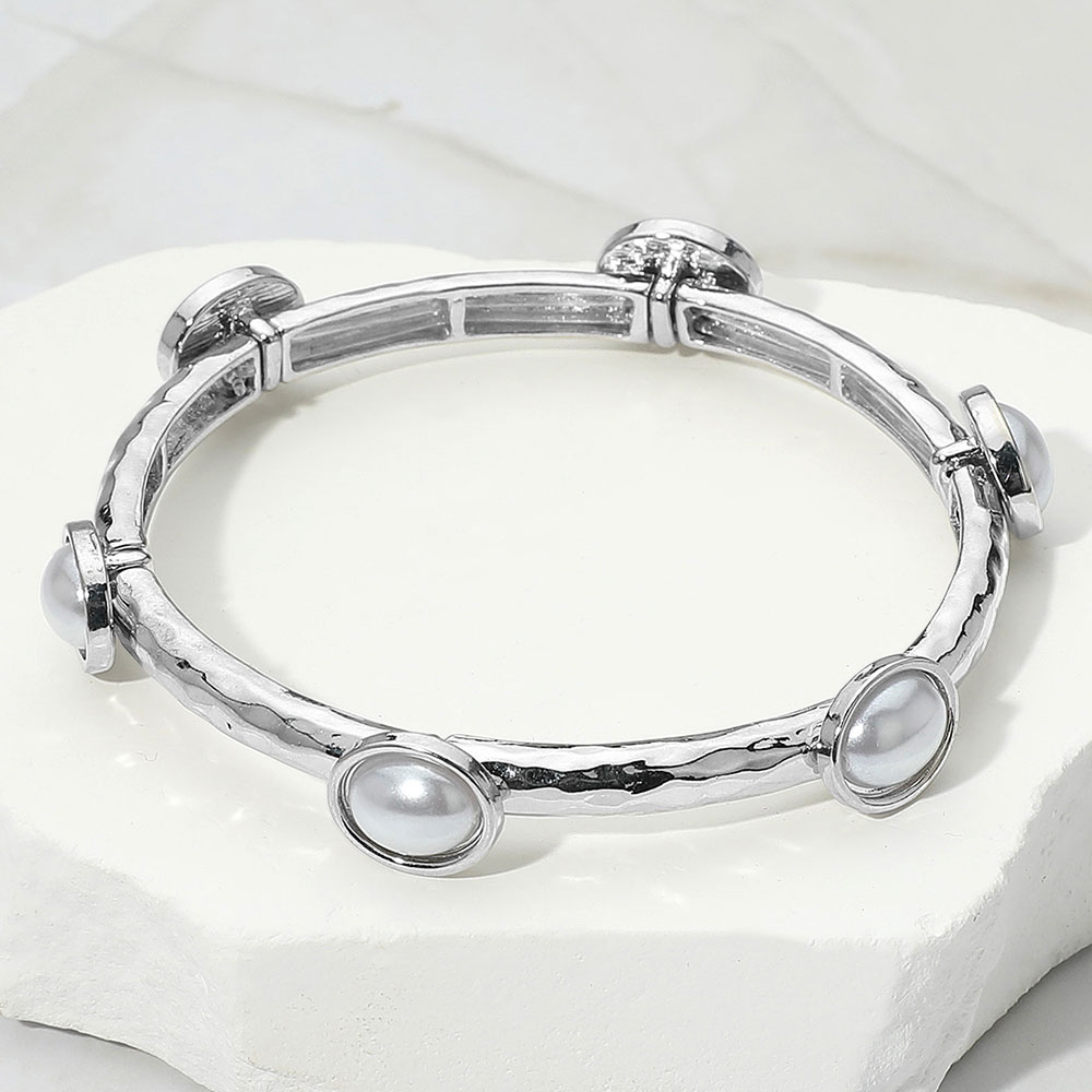 Details • Size : 0.4" H • Stretchable • Stylish stretch bracelet featuring pearl stone accents set in a sleek design. Perfect for adding a touch of sophistication to casual wear or complementing formal and evening outfits. • Lead and Nickel Compliant
