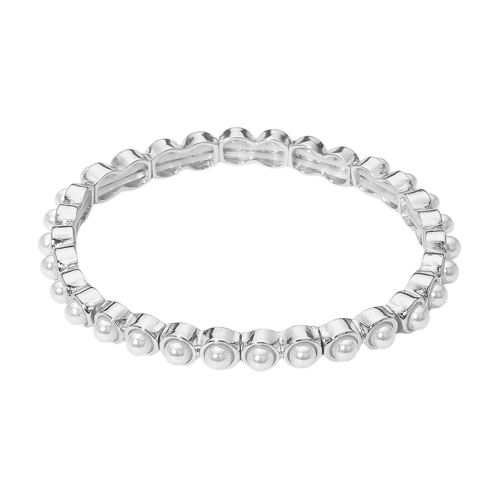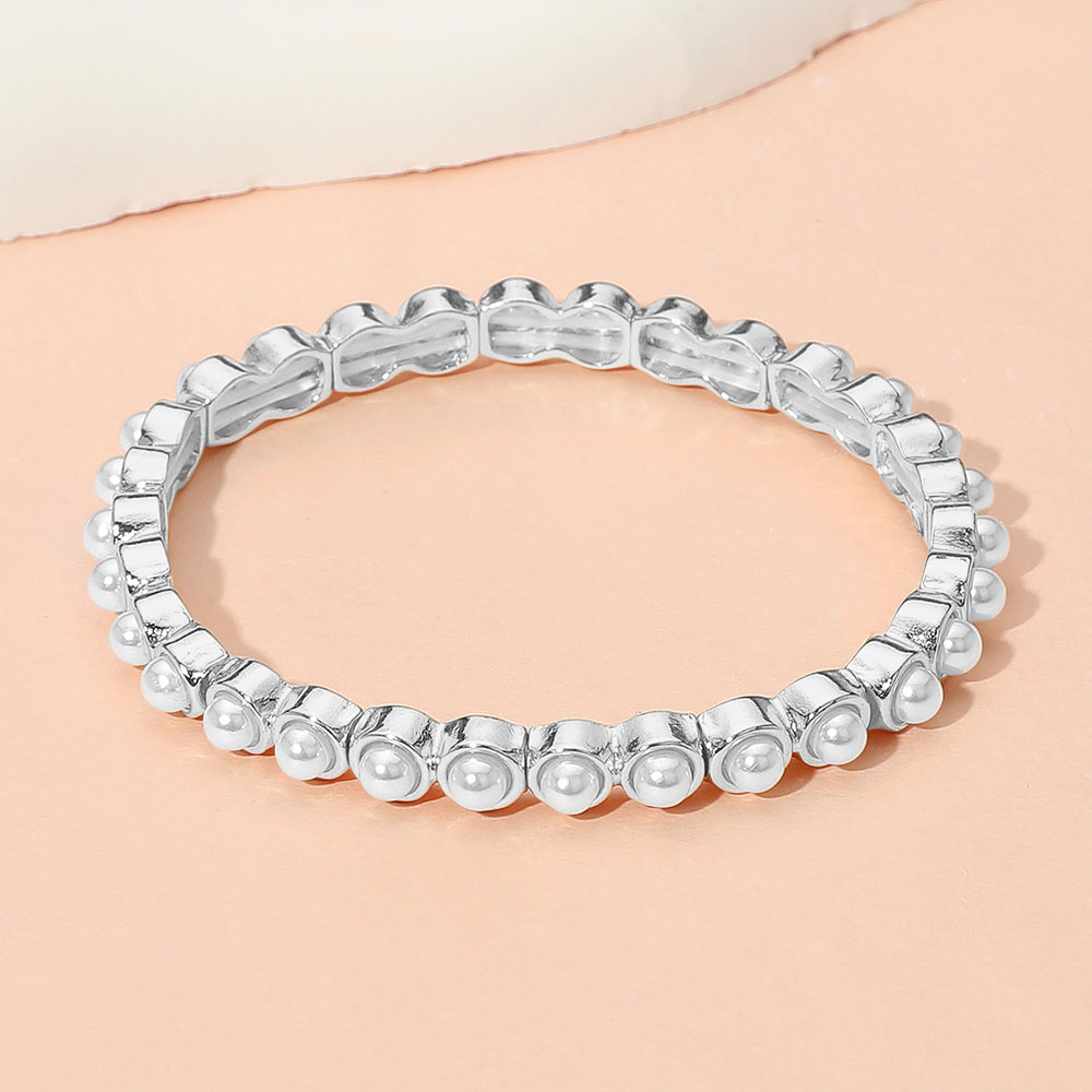 Details • Size : 0.25" H • Stretchable • This stylish bracelet features rounded bead accents framed by polished links in a seamless design. A perfect blend of sophistication and charm, this accessory is ideal for both casual wear and formal occasions, offering timeless appeal with a modern twist. • Lead and Nickel Compliant