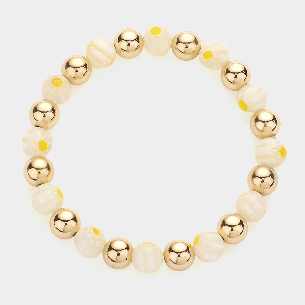 Printed Bead Accented Metal Ball Stretch Bracelet