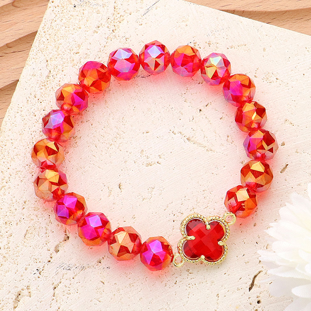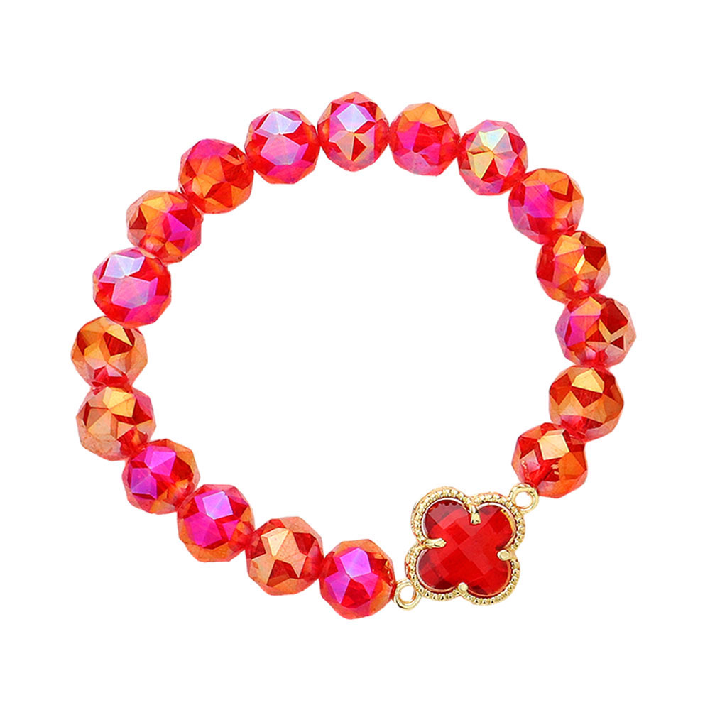 Quatrefoil Pointed Faceted Beaded Stretch Bracelet