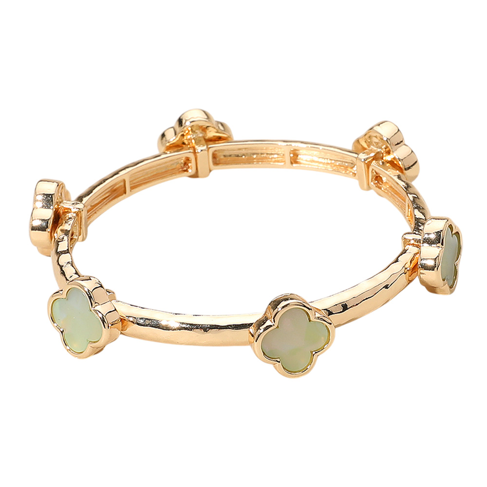 4PCS - Quatrefoil Pointed Metal Ball Pearl Beaded Stretch Multi Layered Bracelets