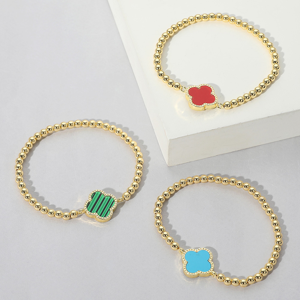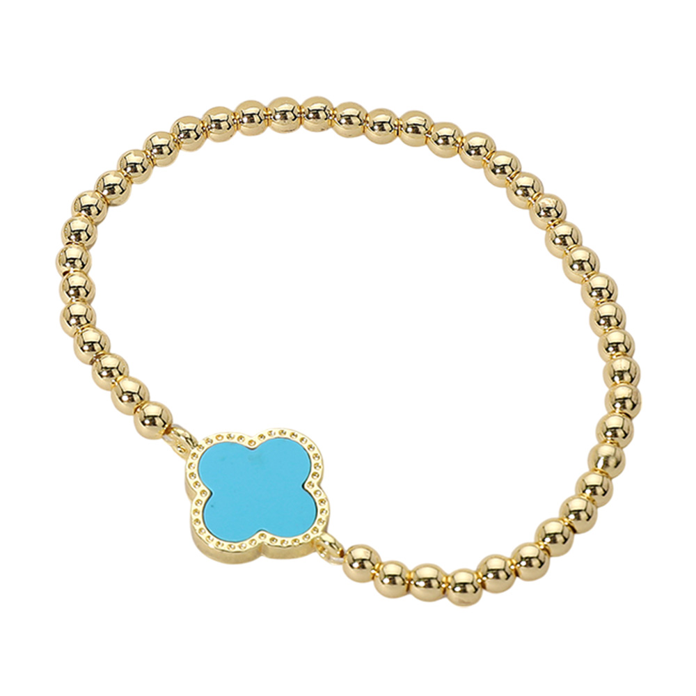 Quatrefoil Stone Pointed Stainless Steel Ball Beaded Stretch Bracelet