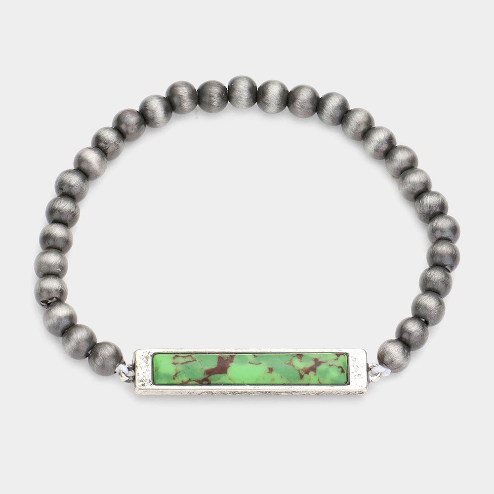 Natural Stone Accented Squash Blossom Stretch Bracelet