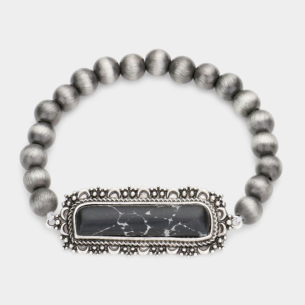 Antique Metal Boho Heart Stone Accent Stretch Bracelet