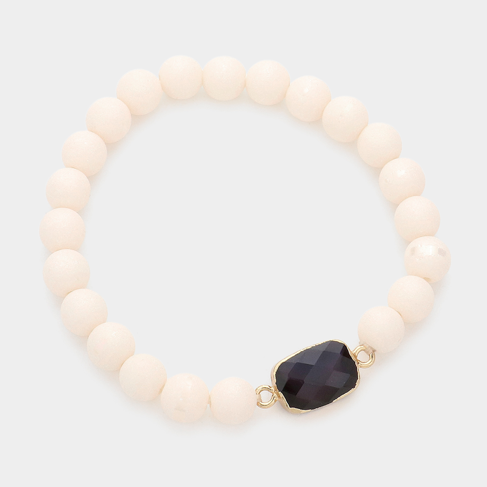 Rectangle Stone Accented Beaded Stretch Bracelet