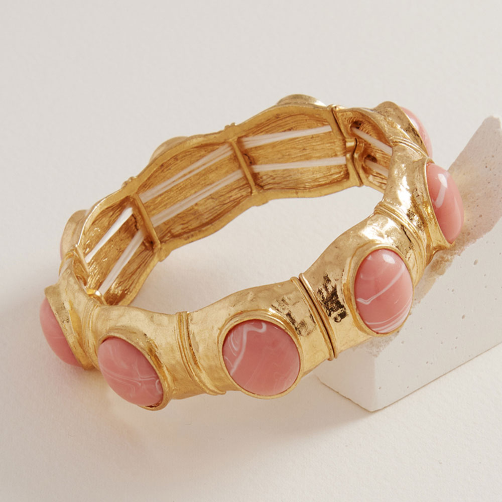 Details • Size : 0.75" H • Stretchable • Bold and stylish stretch bracelet featuring raised oval details and a vintage-inspired band. A perfect statement piece to elevate any outfit with a touch of glamour and retro charm. • Lead and Nickel Compliant