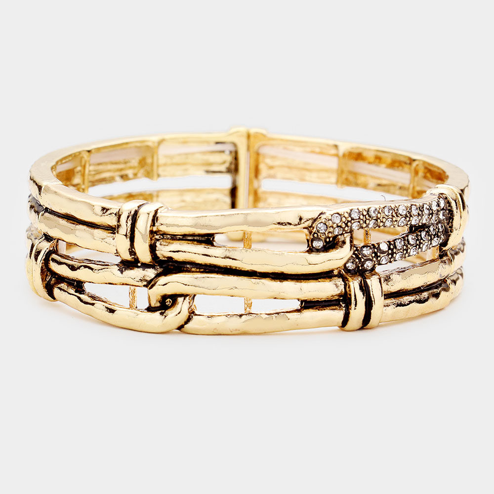 Rhinestone Embellished Antique Metal Rope Stretch Bracelet
