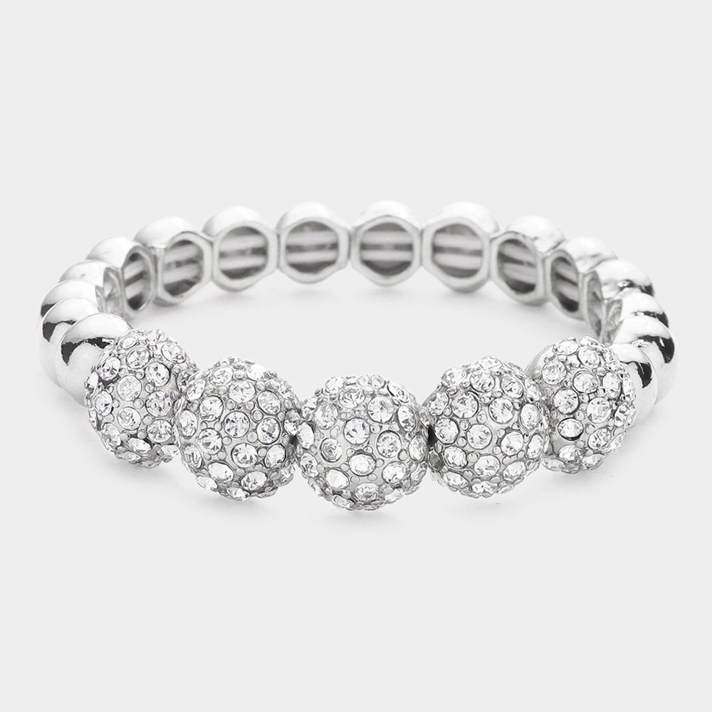 Rhinestone Embellished Metal Dome Stretch Bracelet