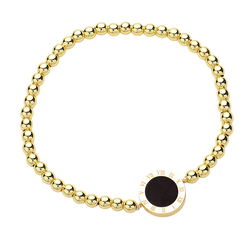 Roman Numeral Round Disc Pointed Stainless Steel Ball Beaded Stretch Bracelet Roman Numeral Round Disc Pointed Stainless Steel Ball Beaded Stretch Bracelet
