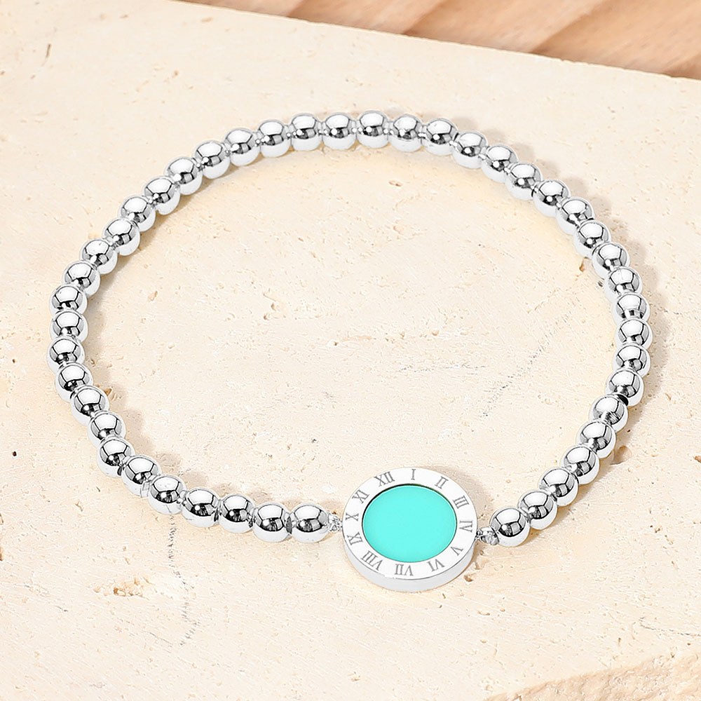 Roman Numeral Round Disc Pointed Stainless Steel Ball Beaded Stretch Bracelet Roman Numeral Round Disc Pointed Stainless Steel Ball Beaded Stretch Bracelet