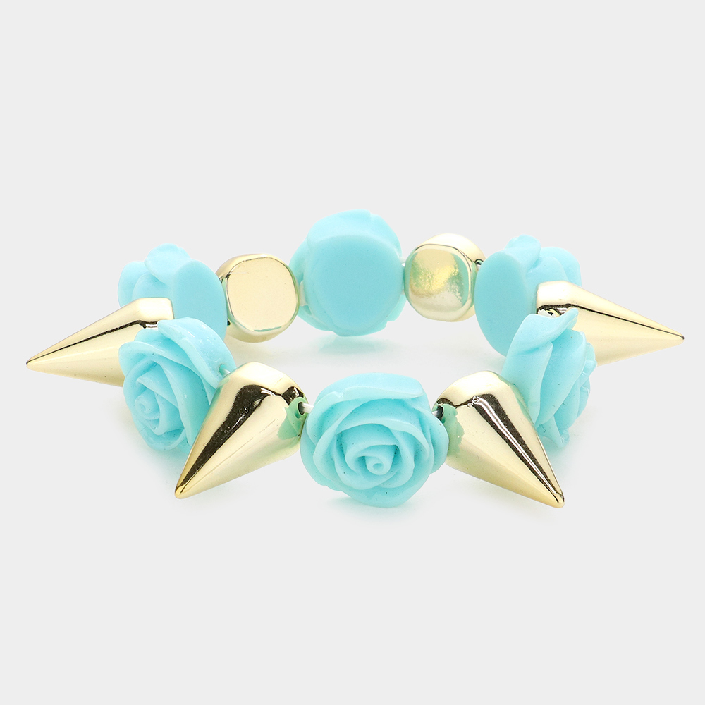 Embossed Floral Pattern Textured Metal Stretch Bracelet