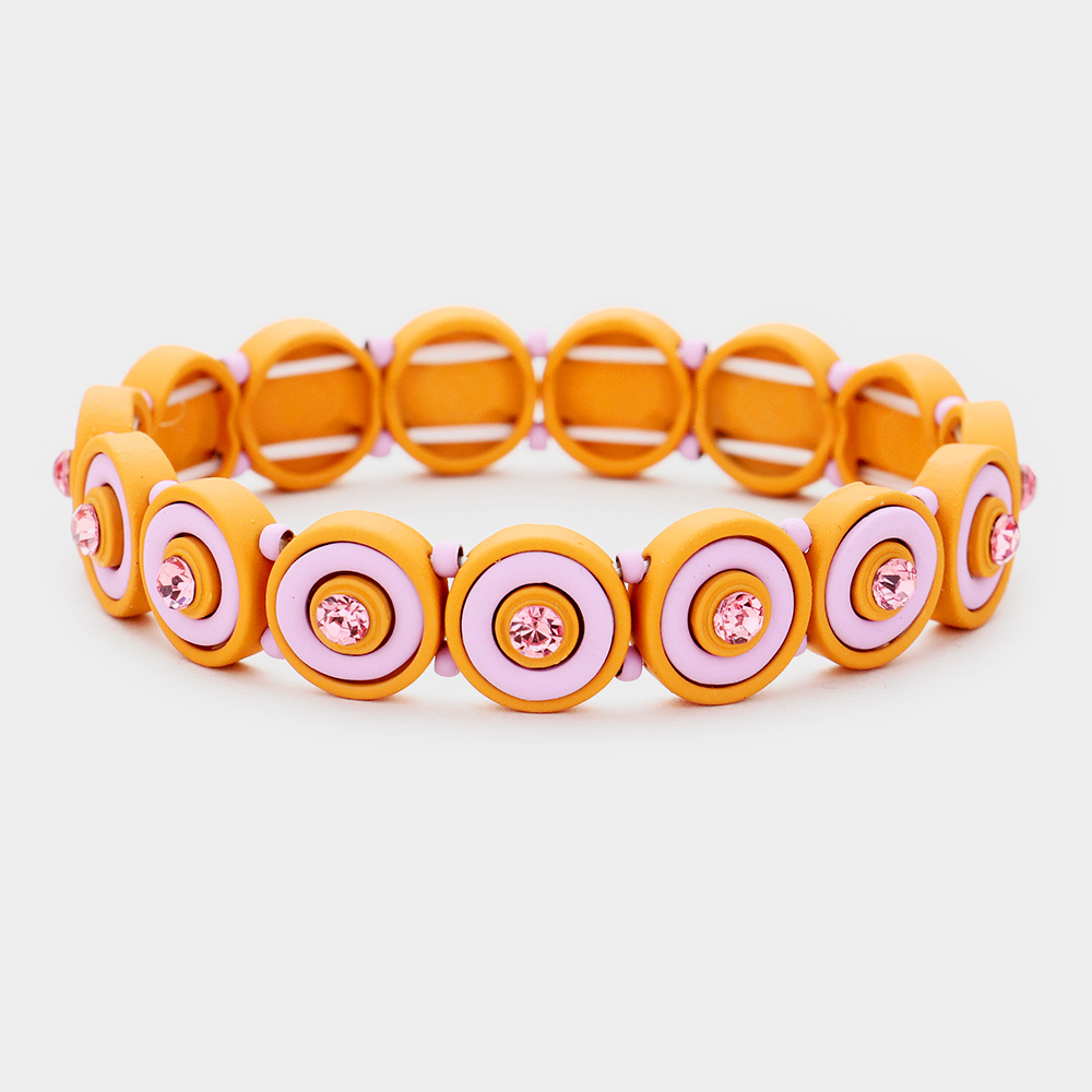 Rhodium Plated Square Round Shaped CZ Stone Lined Statement Hinged Bangle Bracelet