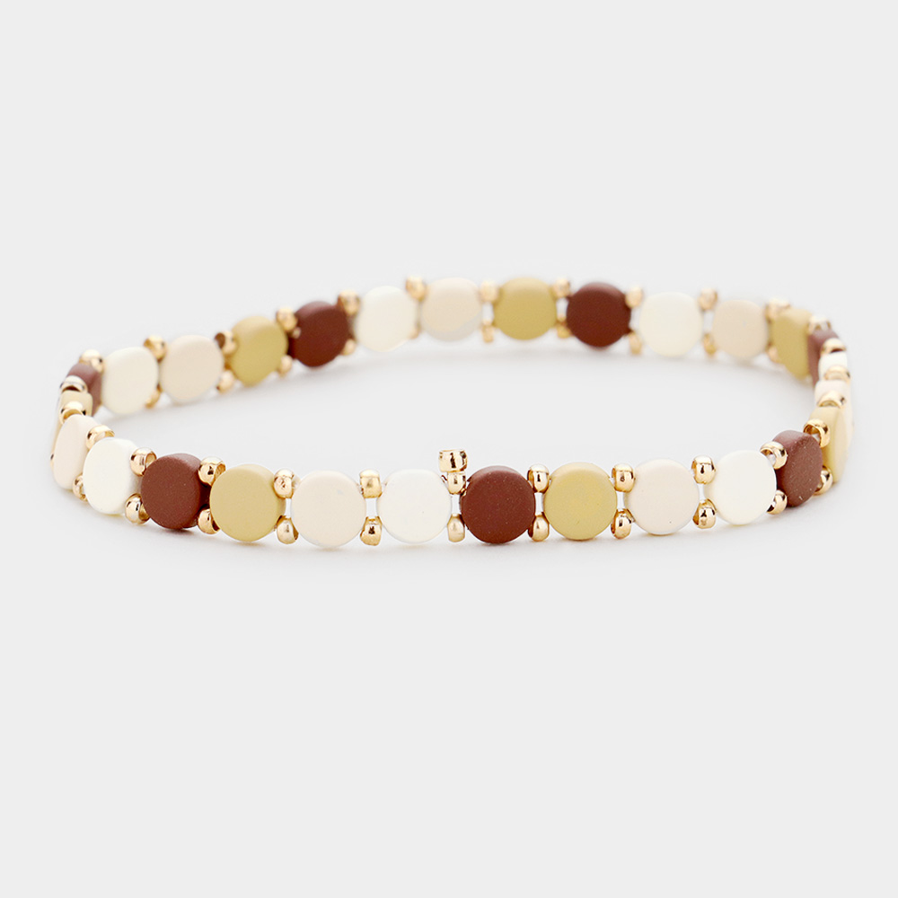 4PCS - ALL CALM Natural Stone Metal Disc Charm Layered Bracelets