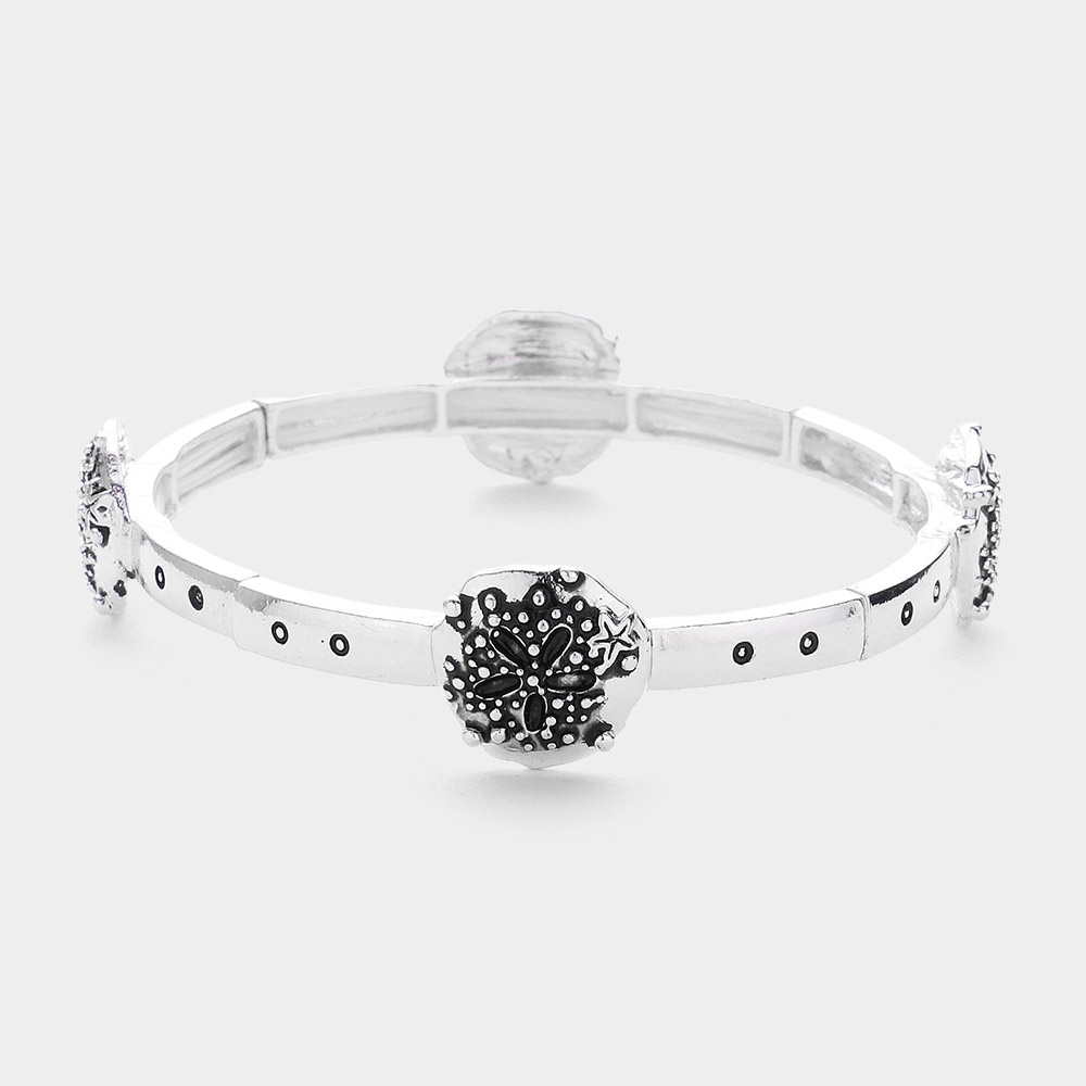 Antique Metal Sand Dollar Turtle Stretch Bracelet